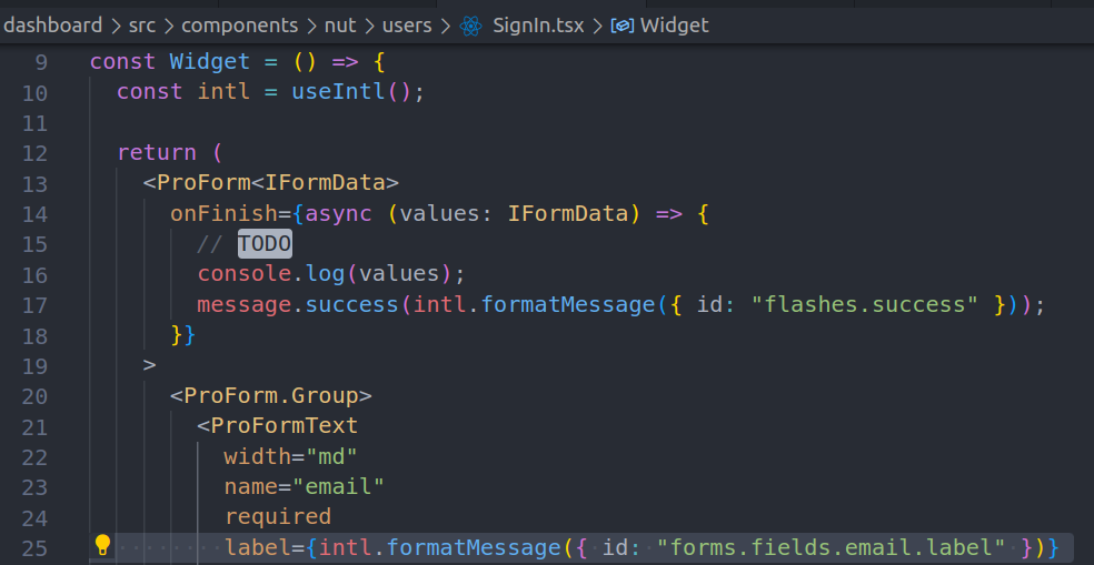 +  - onFinish 里打印出表单值即可,标记为 todo