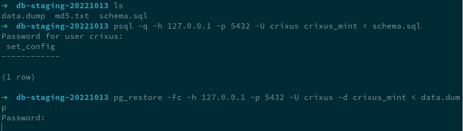 +pg_restore -Fc -h 127.0.0.1 -p 5432 -U YOUR_ID -d YOUR_ID_mint < data.dump