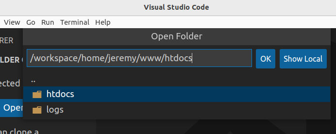 • 然后 vscode 会打开新窗口,选择 Open Folder