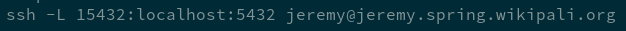 ssh -o ServerAliveInterval=600 -i YOUR_KEY_FILE -L 15432:localhost:5432 YOUR_ID@YOUR_ID.spring.wikipali.org