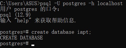 建立新的数据库,例如 数据库名为iapt: 在命令行输入